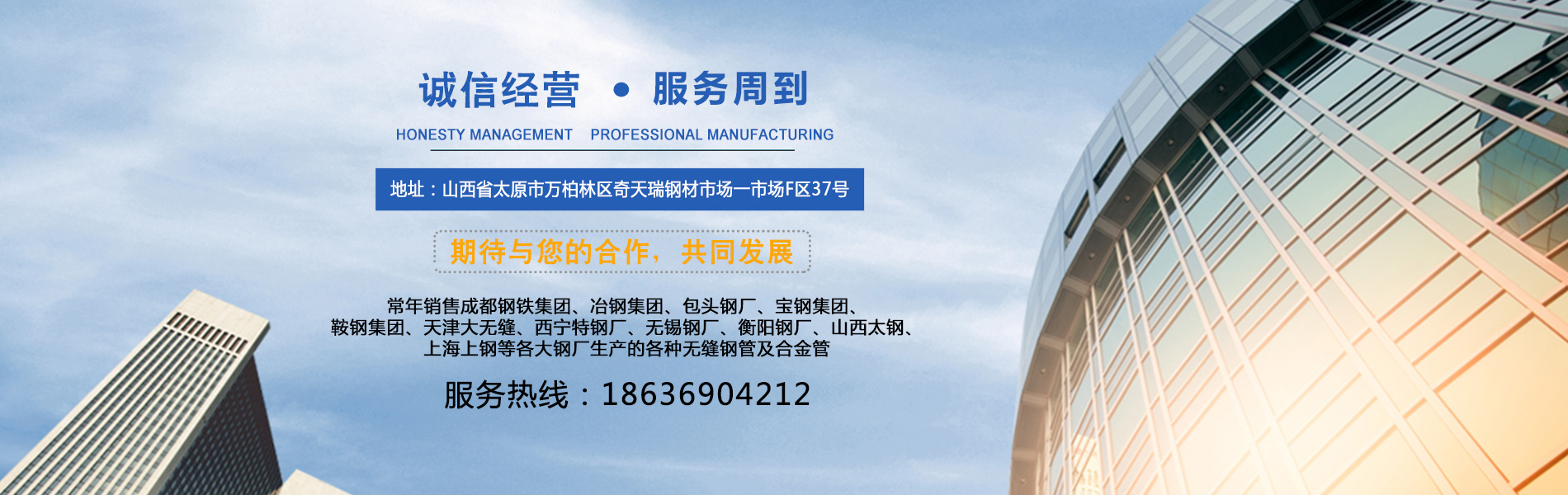 山西衡泰尚盈貿易有限責任公司是集生產加工經營于一體的無縫鋼管、不銹鋼管、合金管、鍋爐管、液壓支柱管、方管、方矩管、不銹鋼板等的大型企業,常年銷售成都鋼鐵集團、冶鋼集團、包頭鋼廠、寶鋼集團、鞍鋼集團、天津大無縫、西寧特鋼廠、無錫鋼廠、衡陽鋼廠、山西太鋼、上海上鋼等各大鋼廠生產的各種無縫鋼管及合金管。